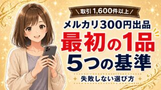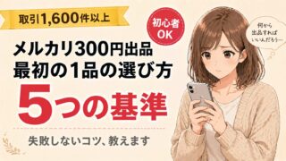 メルカリメルカリ300円出品で失敗しない|最初の1品 5つの基準 「メルカリ始めたいけど、何を出せばいいの?」これ、初心者さんがほぼ全員つまずくポイントです。 ・いいものを出さないとちゃんと売れないんじゃないか・変なクレームが来たらどうしよう・失敗したら恥ずかしいそんな不安で、ずっと手が止... 2026.04.22メルカリ