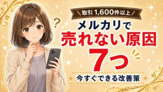 メルカリ【完全版】メルカリで売れない原因7つと今すぐできる改善策 「出品したのに全然売れない…」「いいねはつくのに、なぜか購入されない…」 メルカリを始めたばかりの方や、しばらく使っているけど思うように売れないという方は、こんなふうに感じたことがあるかもしれません。 実は私自身、メルカリで1... 2026.04.15メルカリ