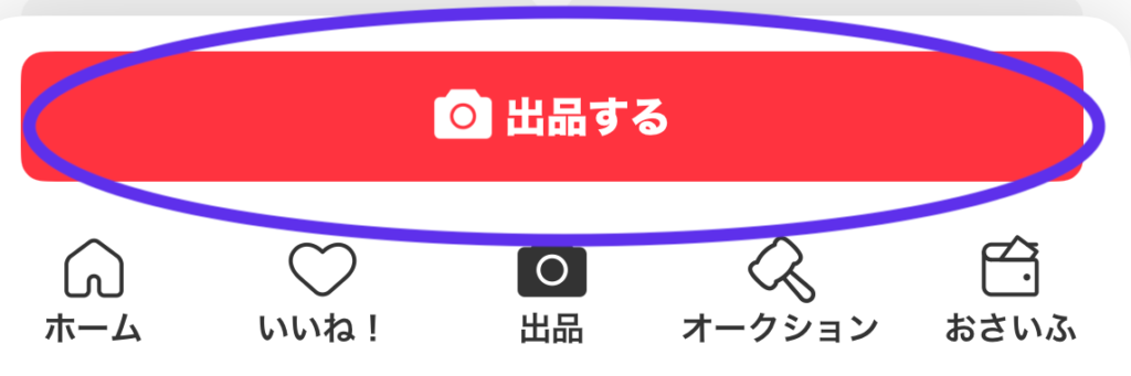 1.アプリの「出品」ボタンをタップして出品画面を開く