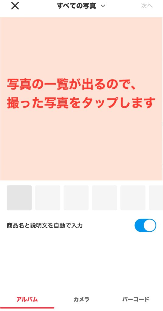 STEP 1:商品の写真を撮る・出品画面から写真を選択する