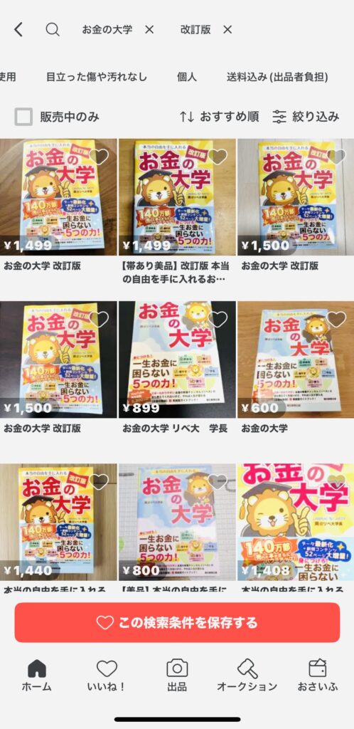 メルカリでは新着商品が上位に表示されるため、時間が経つほど検索結果の下の方に埋もれてしまいます。放置していると、ほとんど見られなくなります。