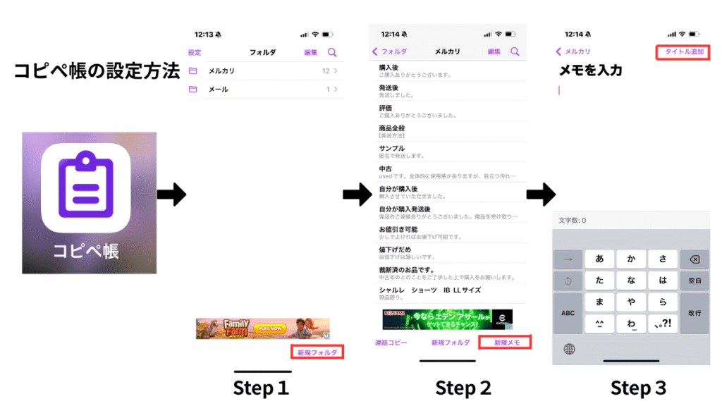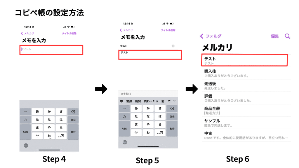 アプリの「コピペ帳」は、メルカリ時短の最強ツールです!