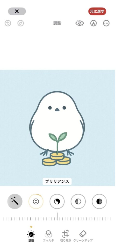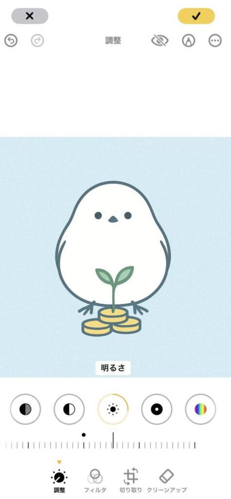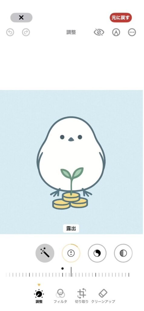 保存した写真をiPhoneの「写真アプリ」で開いて、「編集」から調整します。