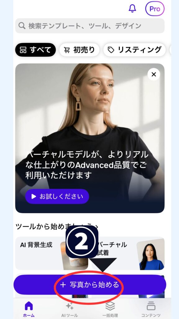 さっそく実際のPhotoroomの操作手順を見ていきましょう。慣れれば1枚あたり1〜2分で完了します。