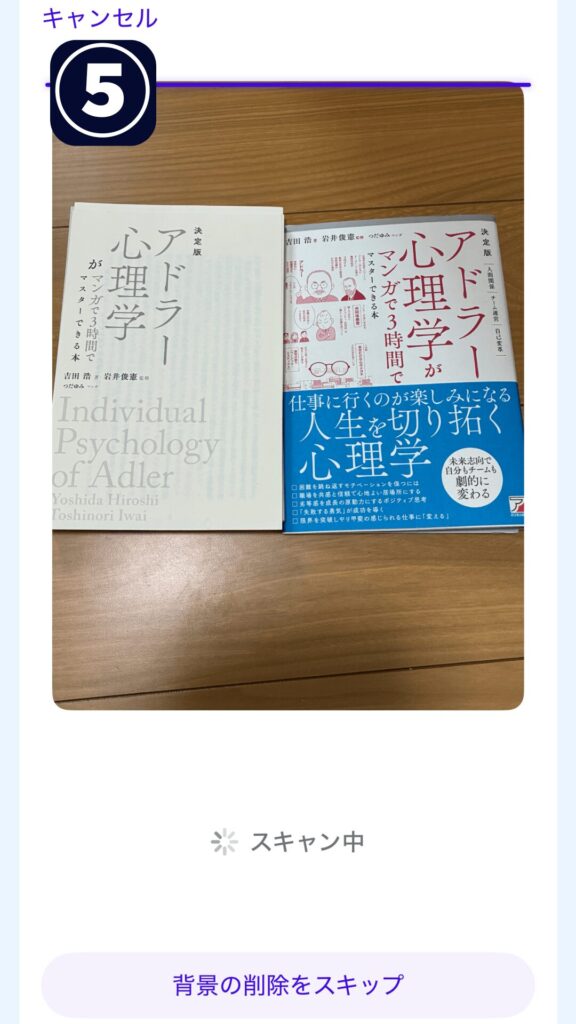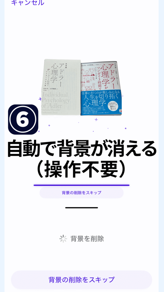 ⑥AIが自動で背景が消える(操作不要、待つだけでOK。数秒で完了します。)