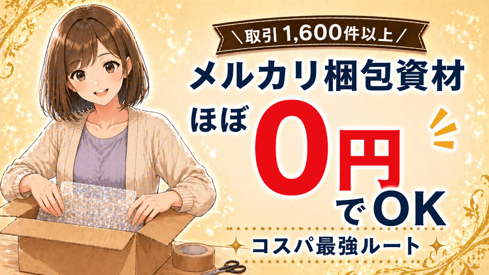 この記事は、元保健師でメルカリ歴10年・取引1,600件以上の私が、梱包資材をほぼゼロ円〜100円以下に抑えるために辿り着いた方法をまとめたものです。